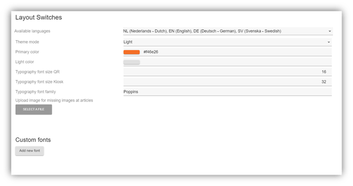 Typography font size Kiosk: The font size of all your letters and numbers for your Kiosk application.