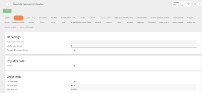 Generate QR as proof of order: This will provide orders that are placed successfully on the Jamezz platform, with an unique order ID as QR-code. This will be displayed on the order placed page, printed eon the receipt and included if order-mail is enabled. The QR-code can be scanned with the Kitchen screen, it will pop-up the order on the screen and the status can be changed.