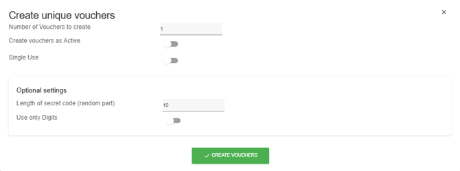 With this button you can create more voucher codes at the same time. You get a pop-up with some questions.