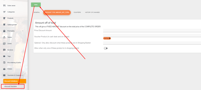 Discount Definition: Here you can give the voucher you created a definition (name).
