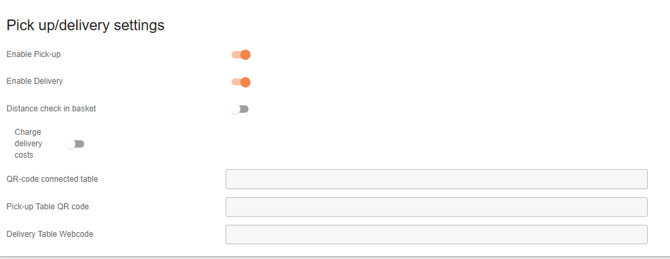 The first switches are just to enable pick-up and delivery, so you are able to use one of both or both of them. “Enable Pick-up”, “Enable Delivery”.