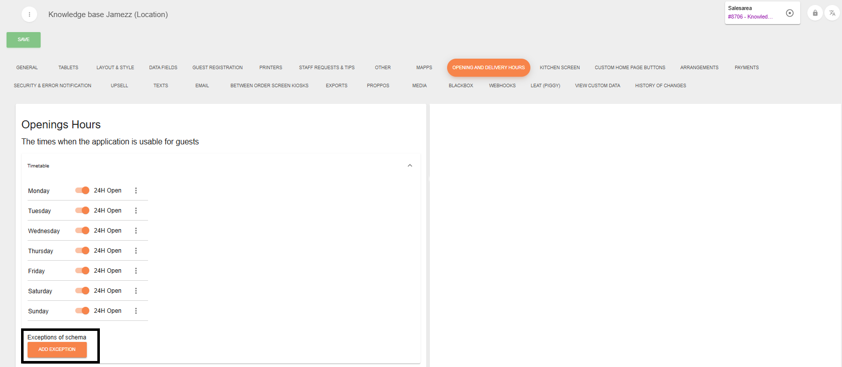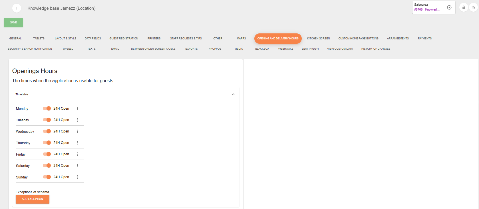 For the TABLET solution it is nesserary to set up the openings hours eiter the times when the application is usable for your guests.