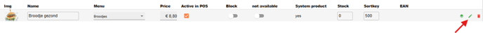 Edit the product you would like to give a time schedule to with the pencil icon.