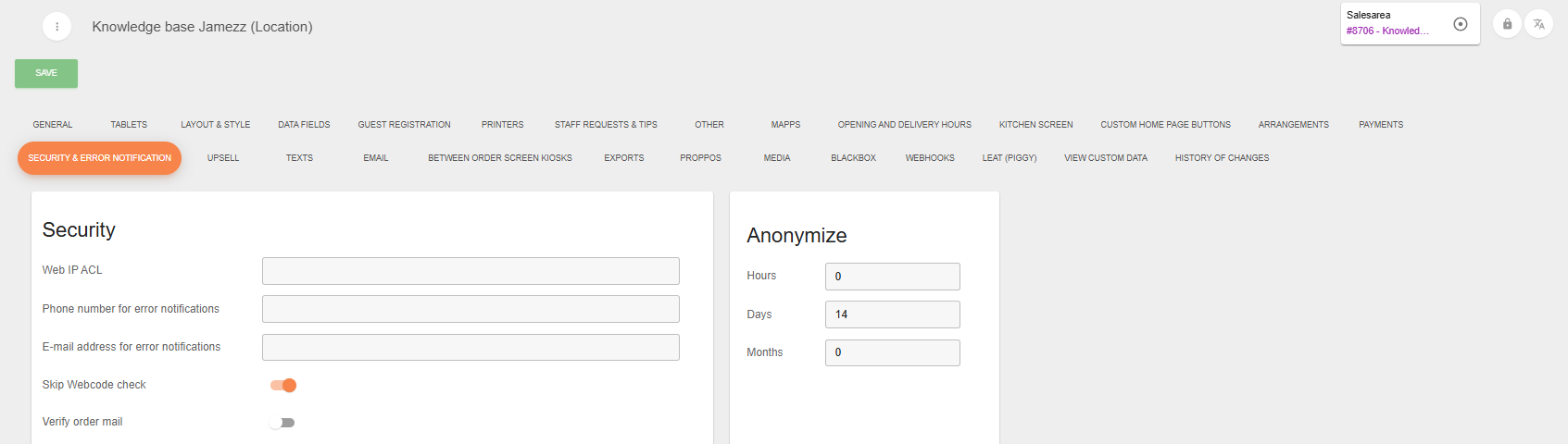 Web IP ACL: Setting to ensure that Jamezz can only be used from the ip addresses entered here, separated.