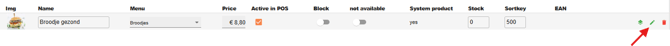 If you would like to change a translations of a product, first you edit the product with the pencil.